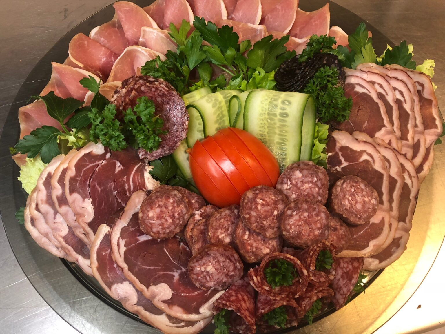 Spekeskinke, fenalår, salami, mårpølse, stabburspølse og elgsalami.