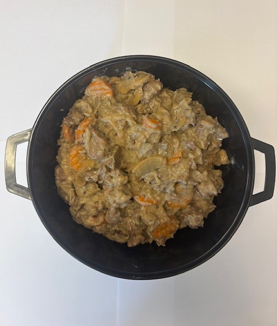 Viltkjøtt, gulrot, løk, champignon, fløte, ripsgele, viltkraft